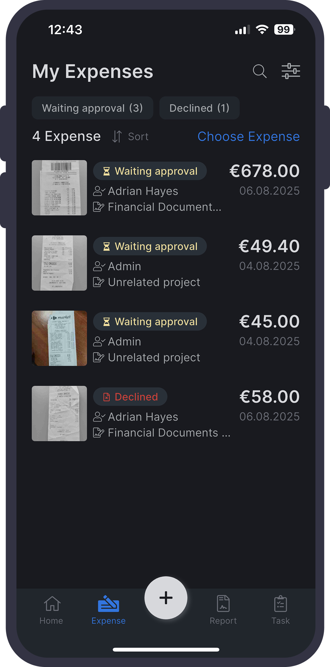 Take a photo of your invoice or receipt, upload it, and send it for approval. Let Plena Masraf track your expense records for you—so you can focus on your other tasks and boost your productivity.