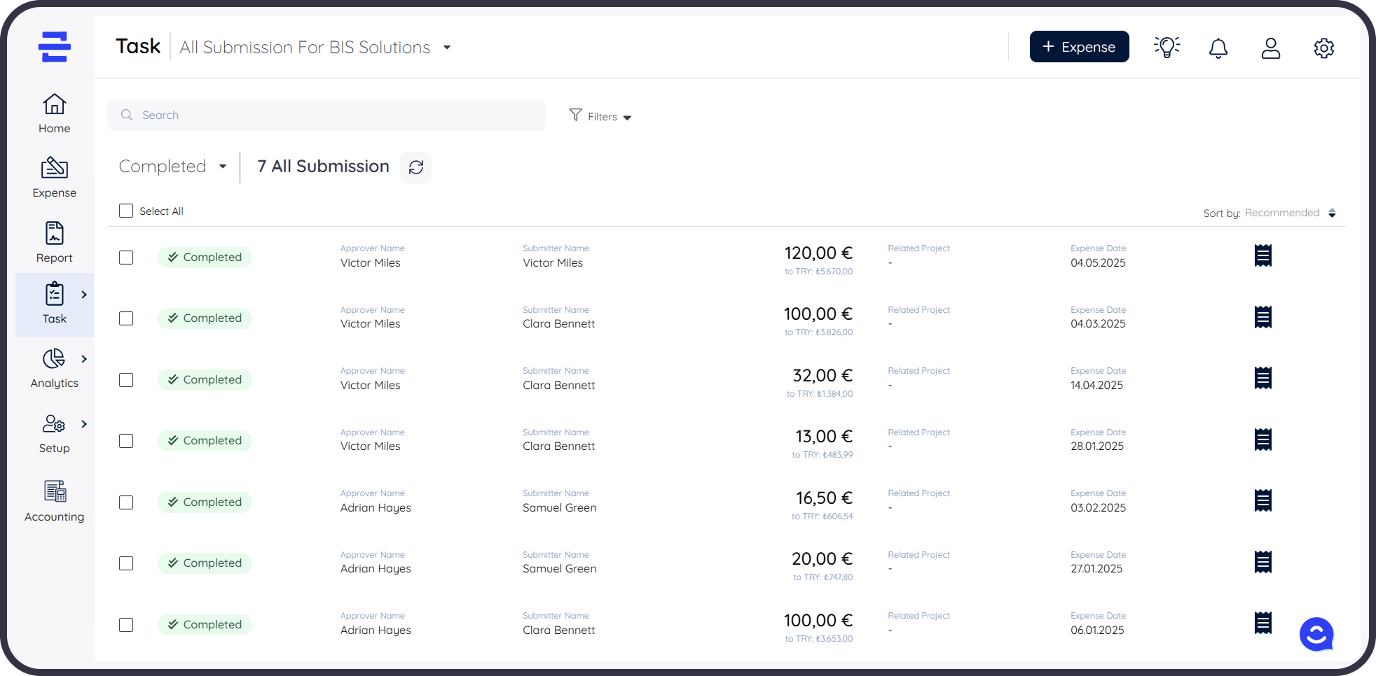 Monitor and analyze all expense record details in real time through dashboards and reports.