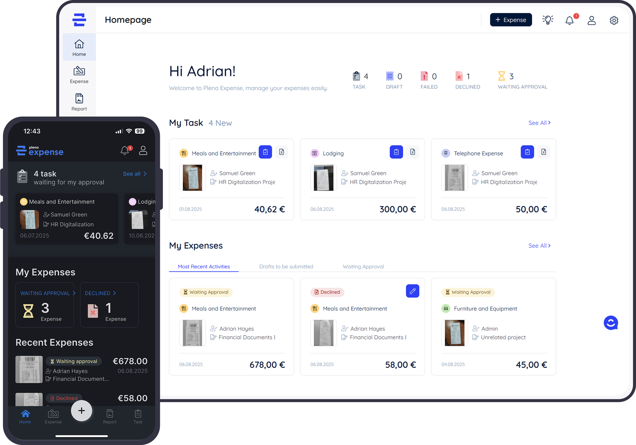 You can securely manage and track your expenses instantly, whether via mobile or the web.